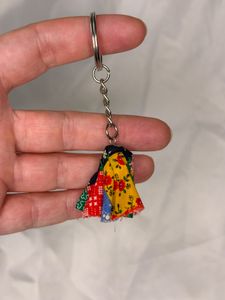 Product details for Patchwork Fabric Ghost Keychain.