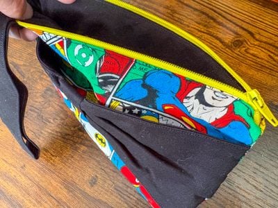 Add a pop of comic book style to your day with this handmade zippered wristlet!