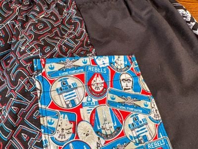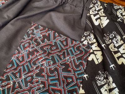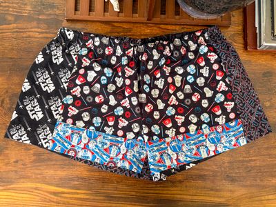 0 savesThis unique pair of shorts is crafted from multiple cotton fabrics sewn together in a playful patchwork design. Soft, breathable, and lightweight, these shorts are perfect for lounging at home or adding a fun, casual touch to your everyday wardrobe. Featuring a comfortable elastic waistband and vibrant Star Wars-inspired prints, they’re a must-have for fans of the galaxy far, far away.